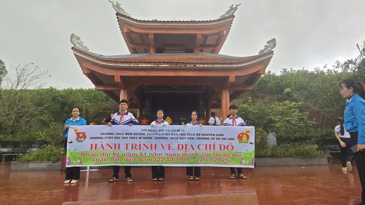 Chiều ngày 21/12/2025. Chi đoàn trường Tiểu học Lê Quý Đôn phối hợp với liên đội, chi đoàn các trường trên địa bàn xã tổ chức các hoạt động về địa chỉ đổ tại Nghĩa trang Liệt sỹ M’Drắk, Bia tưởng niệm Sư đoàn 10 tại M’Đrắk. Chào mừng ngày 22/12 – Ngày thành lập Quân đội Nhân dân Việt Nam.